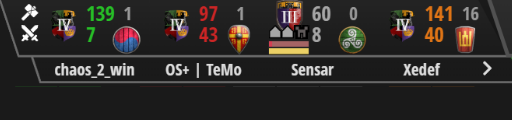 For standard team games (two teams with locked teams enabled), in addition to the common statistics, a collection of basic player statistics will be displayed on the scoreboard sidebars.